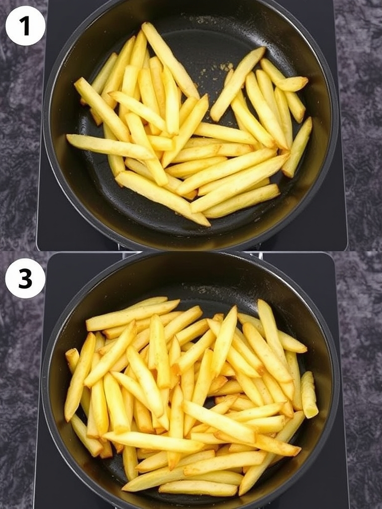 • Lower-fat: Use an air fryer for the second fry (375°F for 8–10 minutes, shaking halfway).